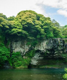 Chiều, đoàn tiếp tục cuộc hành trình tới thưởng ngoạn vẻ đẹp của thác nước Cheonjiyeon – với truyền thuyết về các nàng tiên thường xuống tắm nơi đây, Bãi cột đá Jusan Jelli, và đền Yakcheon. Bạn sẽ được thưởng thức chương trình biểu diễn nghệ thuật đặc sắc “King Show”.